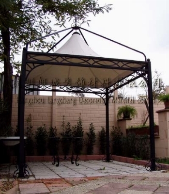 La sua struttura di ferro nero si sposa benissimo con gli accessori in stoffa che sono, spesso, abbinati a questo tipo di arredamento.Prima di tutto, intorno al gazebo in ferro battuto è bene sempre disporre delle tende che facciano sia da filtro che da abbellimento.Il gazebo in ferro battuto, esile e poco ingombrante per natura, senza nessun tipo di tendaggio risulterebbe, infatti, piuttosto spoglio.Le tende da gazebo, così, diventano sia un elemento decorativo che funzionale.Il ferro è un buon conduttore di calore e tende a surriscaldarsi molto facilmente. Questo significa che sotto il gazebo in ferro battuto la temperatura sarà piuttosto elevata.Le tende, filtrando i raggi del sole, aiutano ad attenuare il caldo.Anche gli accessori, come, ad esempio, i cuscini, sarebbe meglio che fossero in tessuto, materiale che riesce a rimanere fresco a dispetto delle temperature particolarmente alte.Nel caso l’arredamento del giardino fosse rustico, il gazebo in ferro battuto è comunque da tenere in considerazione perché aiuta a creare una divisione tra gli spazi esistenti, sia di tipo funzionale che decorativo.